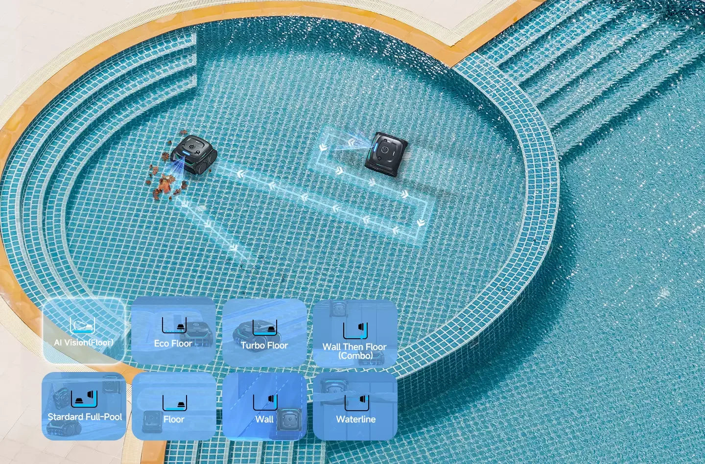 With excellent climbing capabilities, ensuring a smooth and uninterrupted cleaning process between the shallow and deep areas of the pool.