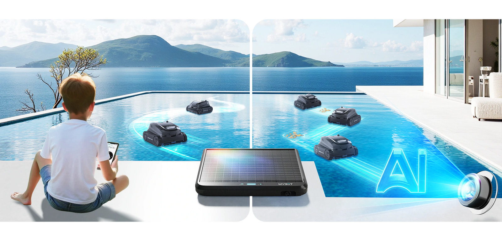 World's First Underwater Solar-Powered Robotic Pool Cleaner – Ensure continuous operation without electricity costs or battery worries.